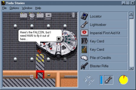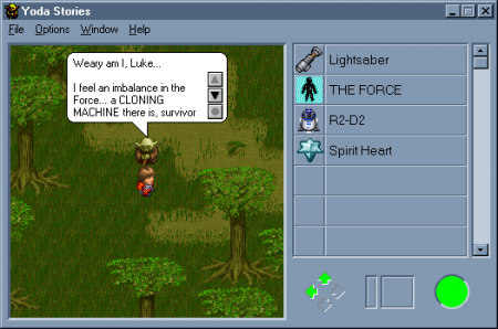 Yoda Stories - вторая приключенческая игра среди которых Indiana Jones и его Desktop Adventures, созданная LucasArts специально для пользователей Windows 95. Серия была создана для обеспечения простых и недорогих развлечений во время деловых перерывов для тех, кто тратит долгие часы с последними «окнами» от Microsoft.